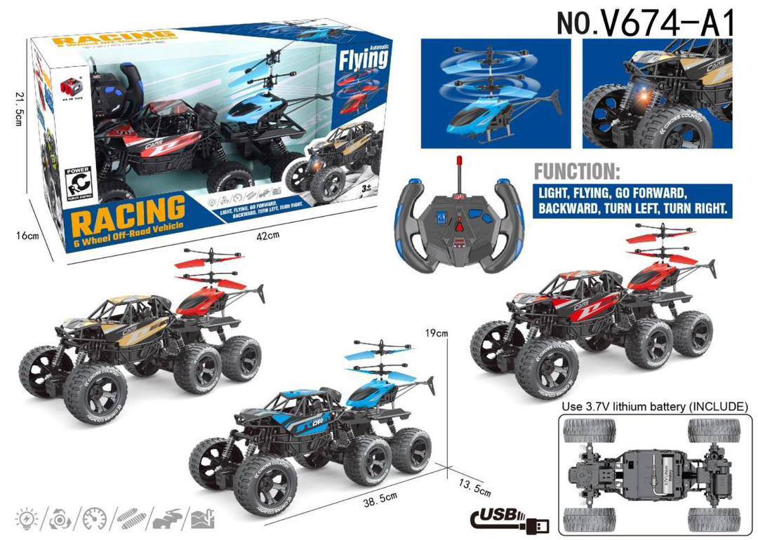 اسباب بازی ماشین کنترلی شش چرخ شارژی همراه با هلیکوپتر سنسوری شارژی