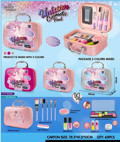 کیف آرایشی همراه با لوازم طرح یونیکورن 14 قطعه