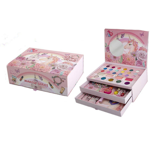 خرید ست آرایشی و زیورآلات کودک مدل LD6137 | جعبه سه طبقه 3in1 طرح یونیکورن