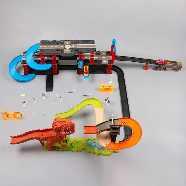 پیست شامل یک پارکینگ با موانع متعددی است که یک مسابقه دهنده واقعی باید بر آنها غلبه کند. کودک باید در هنگام استارت زدن ماشین مسابقه مراقب باشد، زیرا دایناسور خواب نیست و دهان خود را در انتظار باز کرده است. برای شروع، باید دستگاه را در دستگاه راه اندازی قرار دهید، شاتر مکانیزم را بردارید و دکمه را فشار دهید. تمام قسمتهای پیست از مواد با کیفیت بالا ساخته شدهاند و به راحتی به یکدیگر متصل میشوند. خودروهای مجموعه رنگ روشنی دارند. پسر بدون شک این آهنگ را دوست خواهد داشت و به او کمک می کند هنگام بازی سرگرم شود. کیت ها شامل تمام قطعات لازم برای ساخت یک پیست و 2 ماشین هستند.