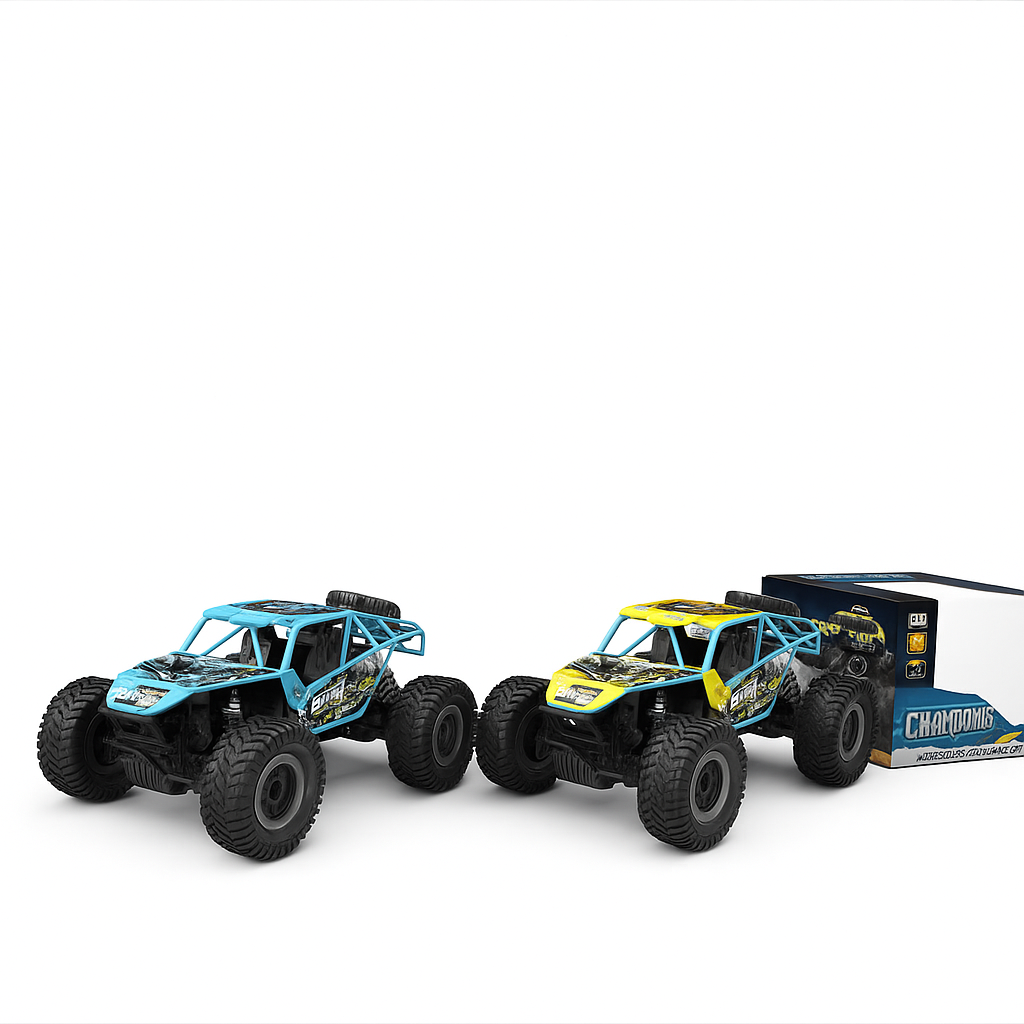 ماشین کنترلی آفرود Champions مقیاس 1:18 با سرعت 15 کیلومتر بر ساعت، سیستم چهار چرخ متحرک 4WD، باطری شارژی و بدنه آلومینیومی مقاوم. مجهز به کنترل بیسیم 2.4 گیگاهرتز بدون تداخل، مناسب مسابقه و مسیرهای سخت.