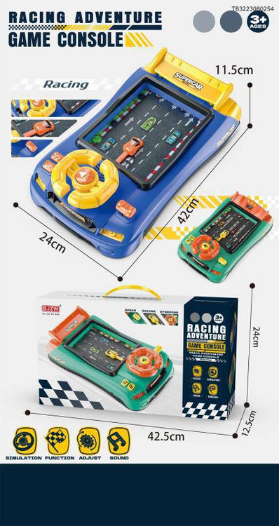 این محصول یک کنسول بازی کودکانه مدل مسابقهای است با نام Racing Adventure Game Console که طراحی و کارکرد آن شبیه به شبیهساز رانندگی برای کودکان است.