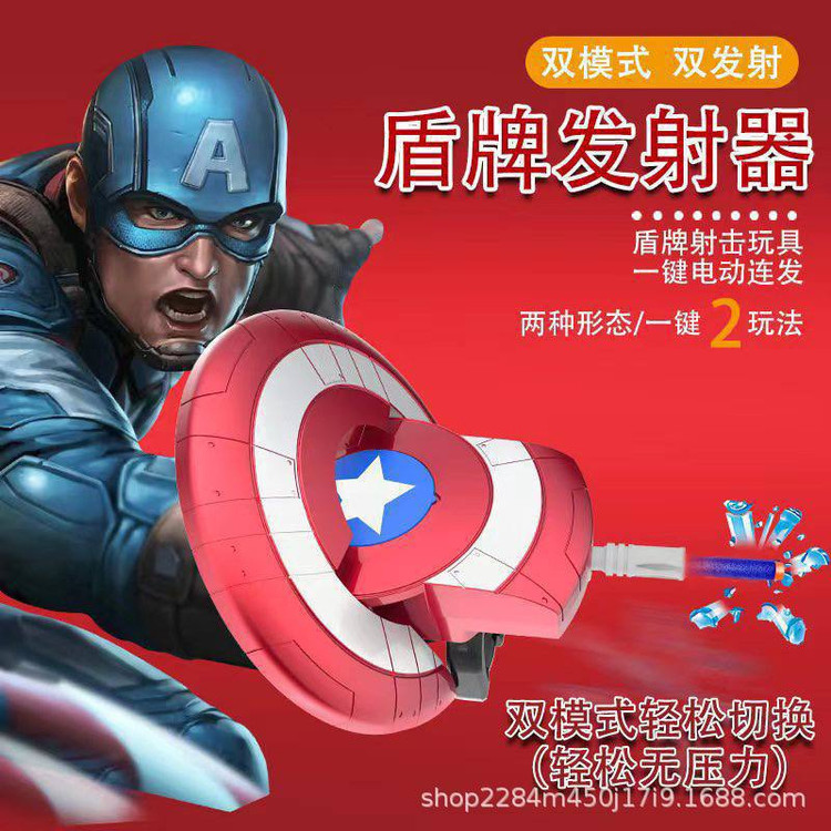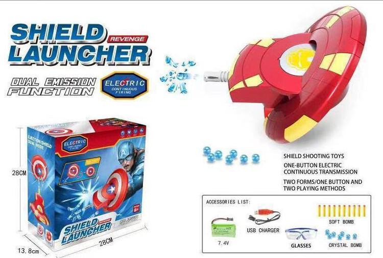 این محصول یک تفنگ اسباببازی پرتابی با شکل سپر (Shield Launcher) است که طراحی آن الهامگرفته از شخصیتهای ابرقهرمانی مثل کاپیتان آمریکا یا آیرونمن میباشد.
