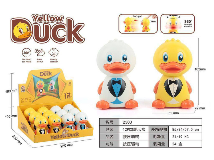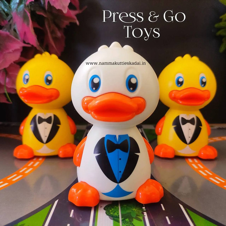 طراحی بامزه با کت و شلوار و رنگهای شاد، باعث جلب توجه کودکان میشود. سر این اردک قابلیت چرخش ۳۶۰ درجهای دارد و با فشردن بدنه، حرکت میکند و برای کودکان بسیار سرگرمکننده خواهد بود.