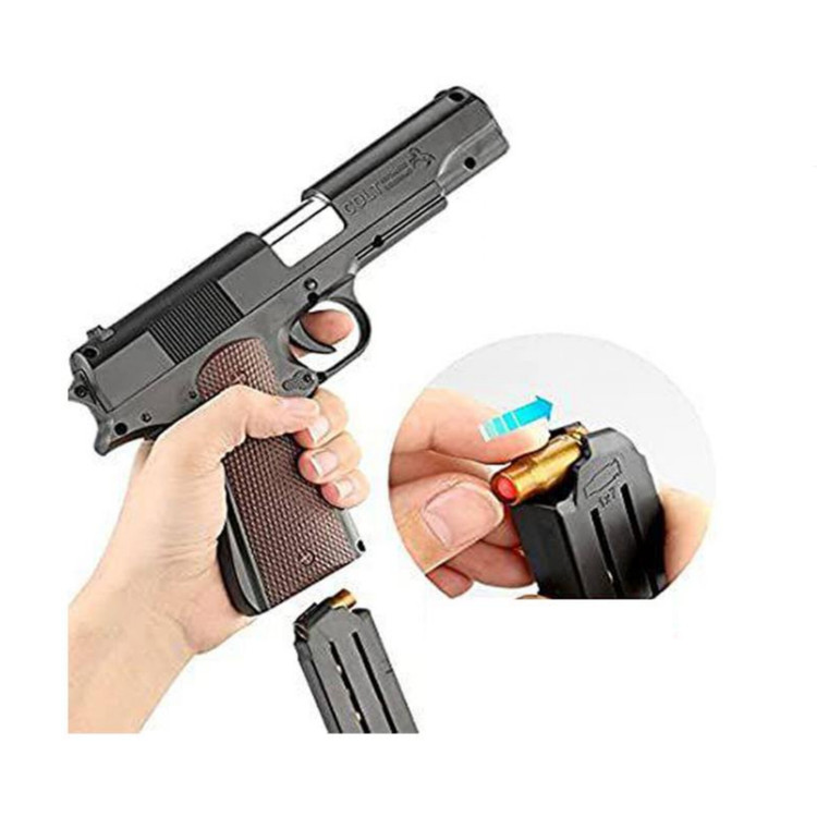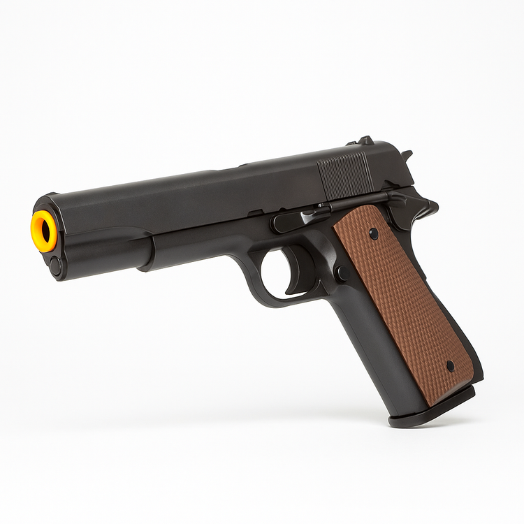 تفنگ اسباببازی کلت پوکهپران نیمهفلزی مدل 1911 با طراحی الهامگرفته از مدلهای کلاسیک، مناسب بازیهای تخیلی و کلکسیون است. ساختهشده از ترکیب فلز و پلاستیک مقاوم برای دوام بیشتر، مجهز به صدا خفهکن جهت اجرای جذابتر بازی و دارای قابلیت شلیک پوکههای فشنگ برای تجربهای نزدیک به واقعیت. این محصول با نوک لوله نارنجی ایمن طراحی شده و مناسب استفاده کودکان بالای ۸ سال است.