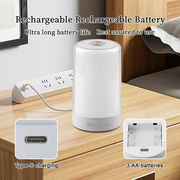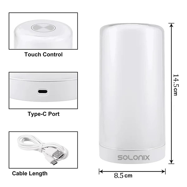 چراغ خواب لمسی شارژی سولونیکس مدل RGB‑145 – تغییر رنگ، قابل شارژ Type‑C و باتری