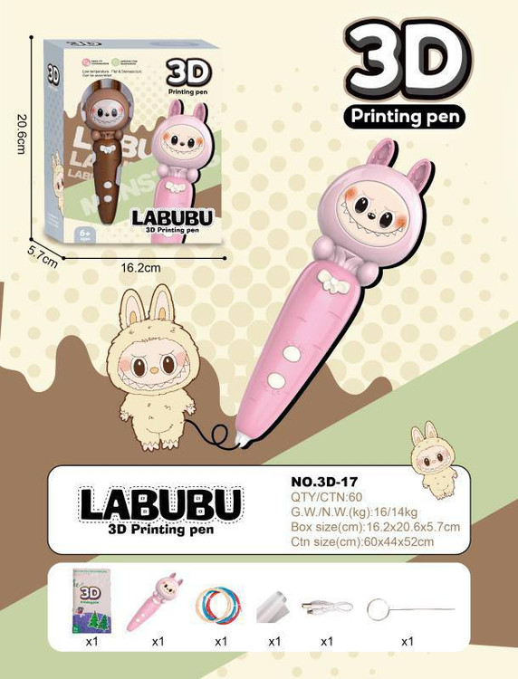 خودکار سهبعدی LABUBU 3D Printing Pen یک ابزار خلاقانه و سرگرمکننده برای کودکان بالای ۶ سال است. این خودکار با طراحی فانتزی عروسکی (شخصیت لابوبو) و عملکرد ایمن با دمای پایین، به کودکان اجازه میدهد طرحها و ایدههای خلاقانه خود را به شکل سهبعدی بسازند.